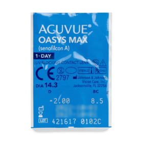 ***070 (인증된 구매자) 아큐브 오아시스 맥스 원데이 (30개들이) - BC (곡률) : 8.5, DIA (직경) : 14.3, PWR (도수) : -5.5